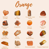 Aujourd’hui, on découvre ma collection orange, celle qui met du soleil dans ta journée. Tu vas y trouver des pépites comme la calcite orange, l’agate cornaline ou la pierre de soleil. Moi, l’orange, ça me rappelle une citronnade en été, un truc qui te donne la pêche en deux secondes !