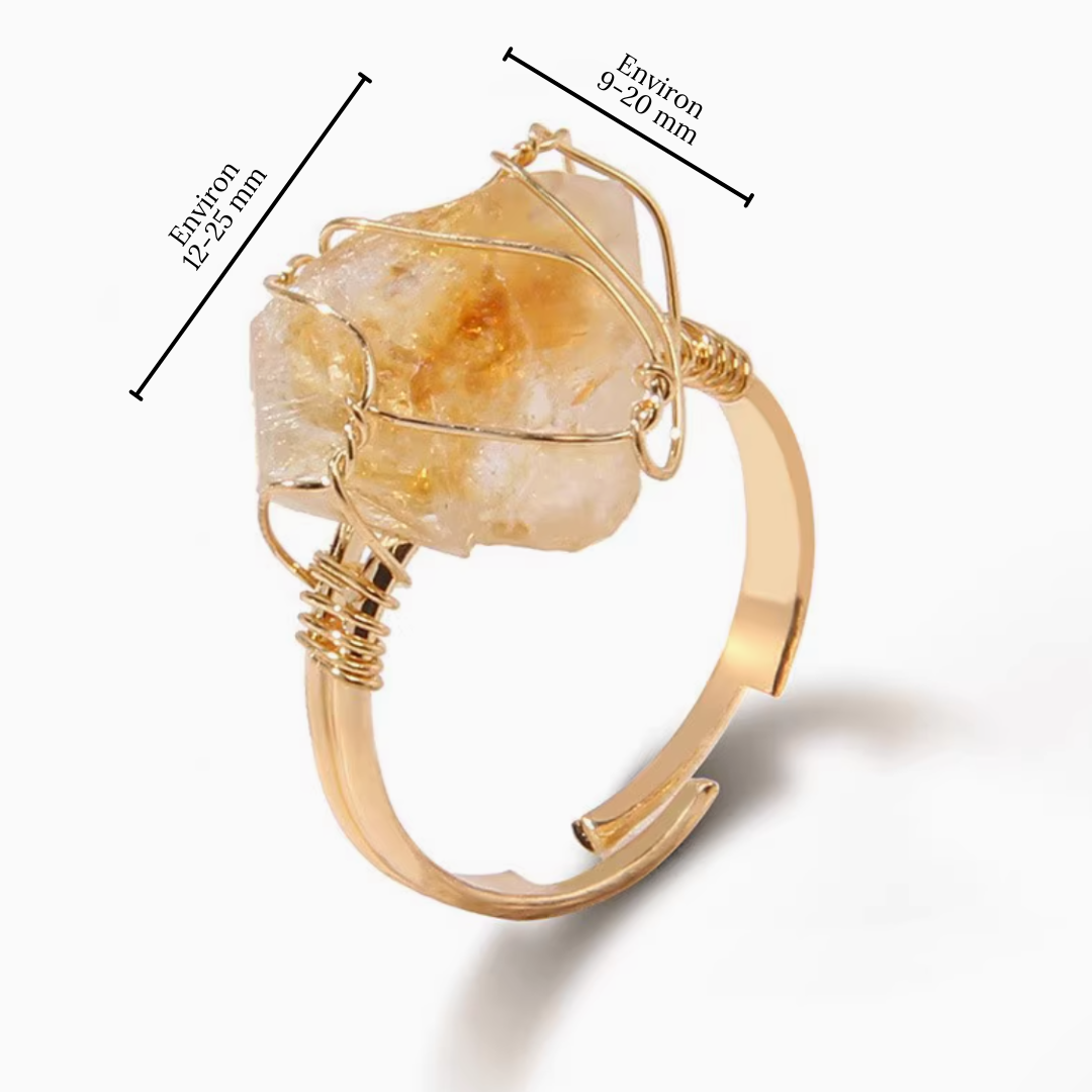 Bague ajustable en Citrine dorée, parfaite pour inspirer énergie et confiance. Son éclat chaleureux et son design élégant ajoutent une touche de lumière à votre style.