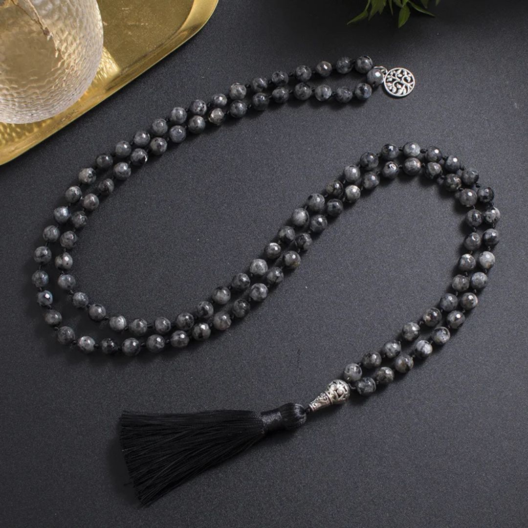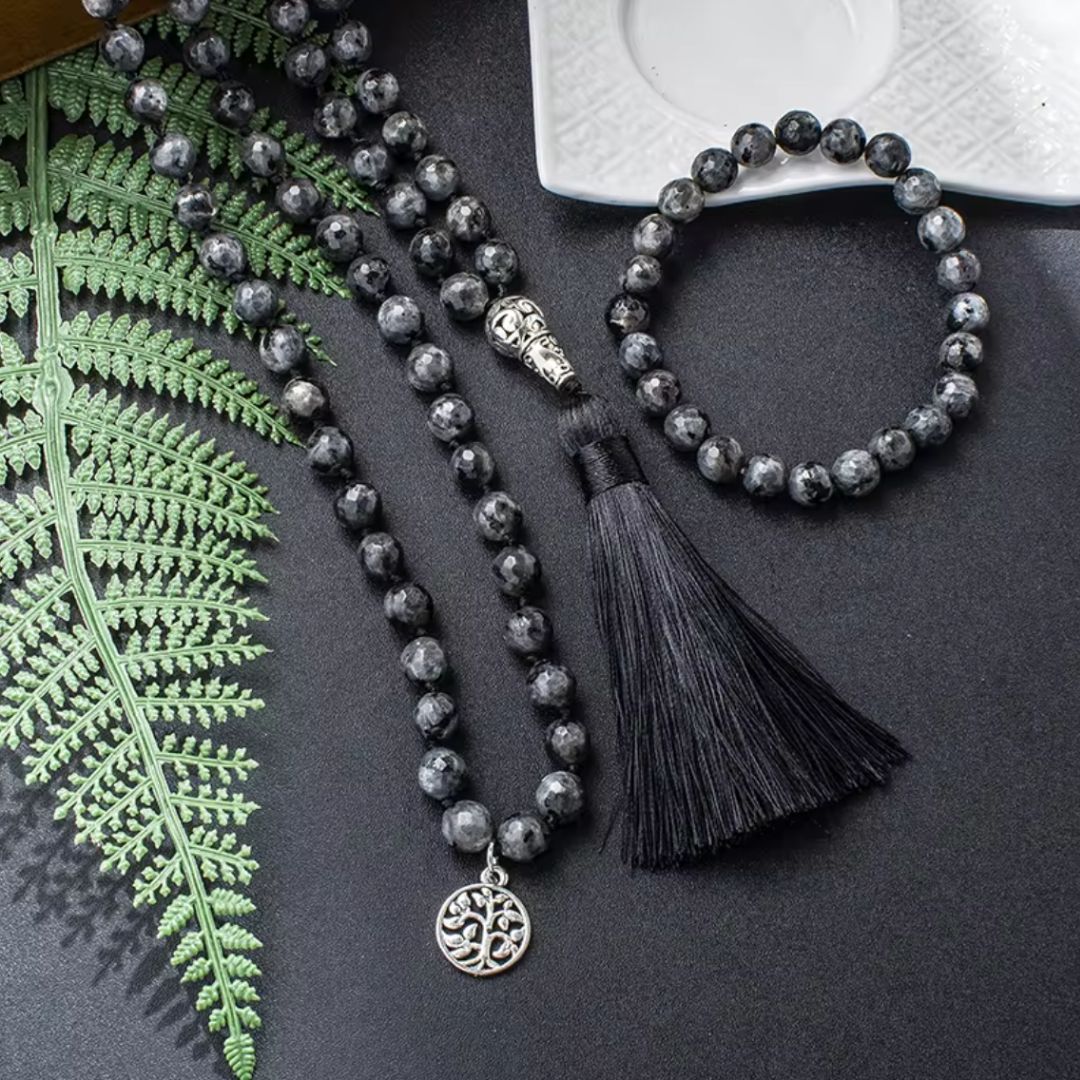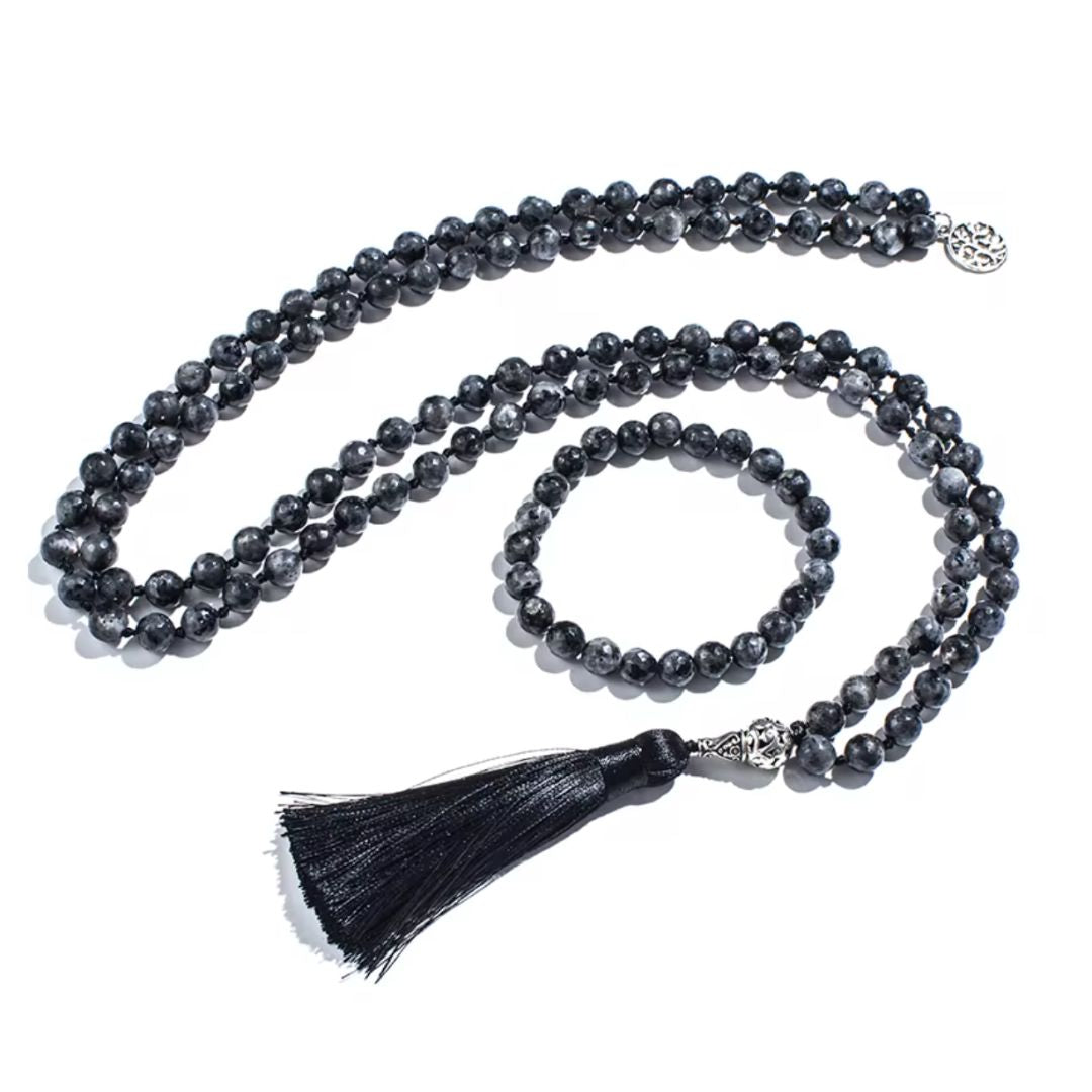 Parfait pour retrouver calme et équilibre au quotidien, ce mala en labradorite est accompagné d’un joli bracelet assorti offert. Un bel ensemble à porter ou à offrir, alliant élégance et bien-être.