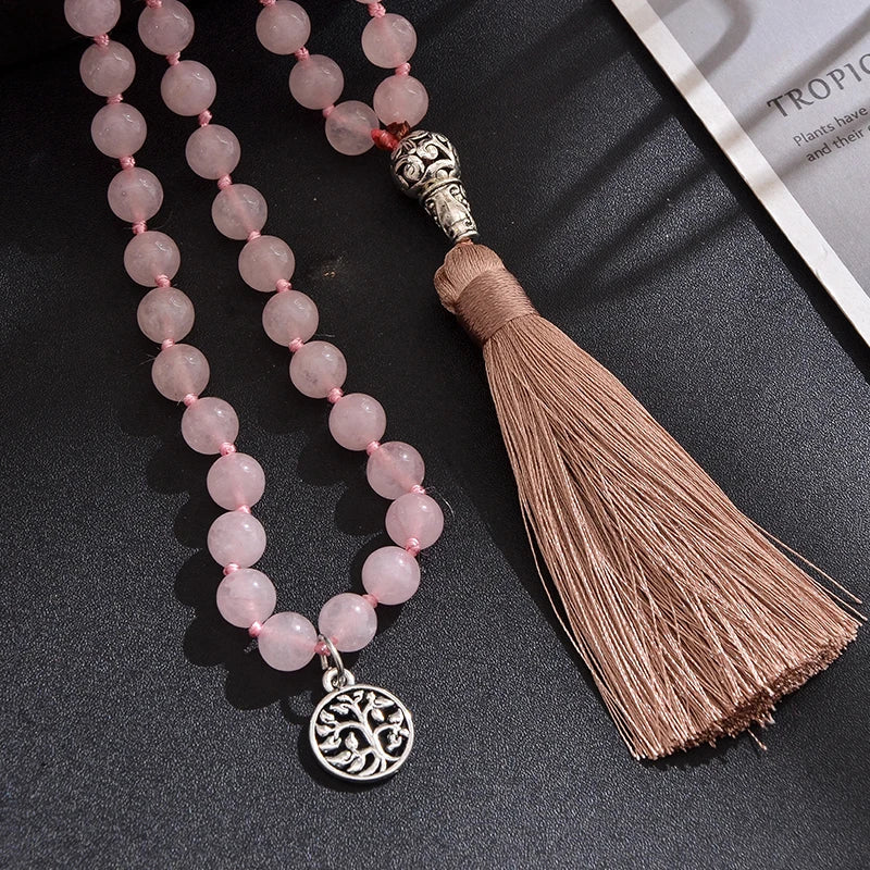 Équilibre et sérénité avec ce Mala en quartz rose, symbole d’amour et de bien-être. Il vous accompagnera au quotidien en diffusant des énergies apaisantes et harmonieuses.