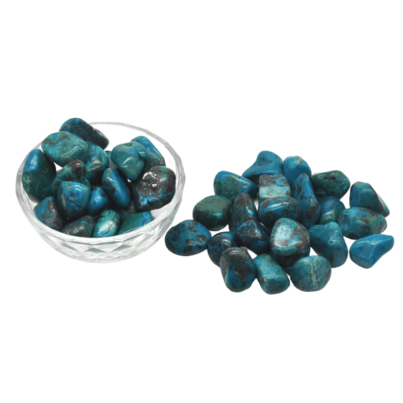 La chrysocolle s'apparente beaucoup à la turquoise et à la malachite. Elle affiche généralement des couleurs bleues et vertes avec une apparence légèrement terreuse. Composée d'hydrosilicate de cuivre, elle aurait été découverte plusieurs centaines d'années avant J-C.