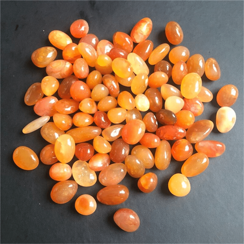 D'une splendide couleur orangée, la cornaline est une variété de calcédoine qui s'est vue nommée ainsi en raison de son apparence proche de celle du fruit de la cornouille. On la trouve en très grande quantité dans les pays asiatiques mais aussi dans les pays sud-américains.
